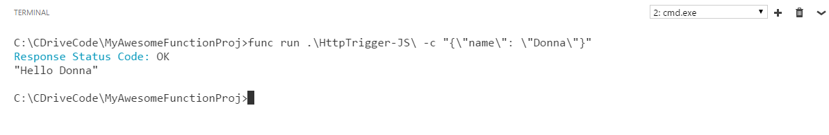 func run .\HttpTrigger-JS\ -c "{\"name\": \"Donna\"}"