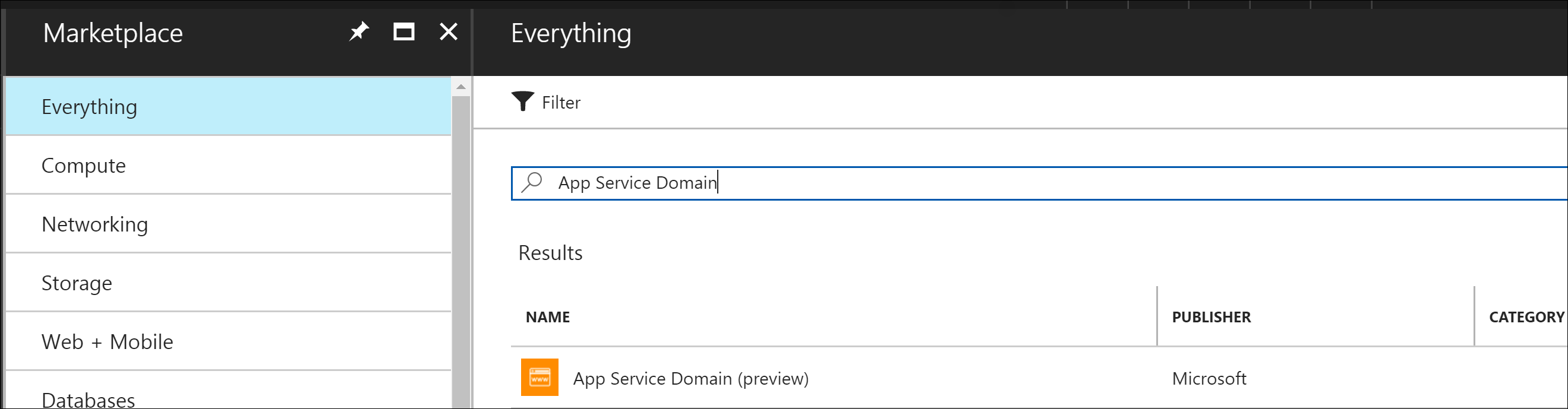 From the left menu, select New -> Everything -> App Service Domain (preview)
