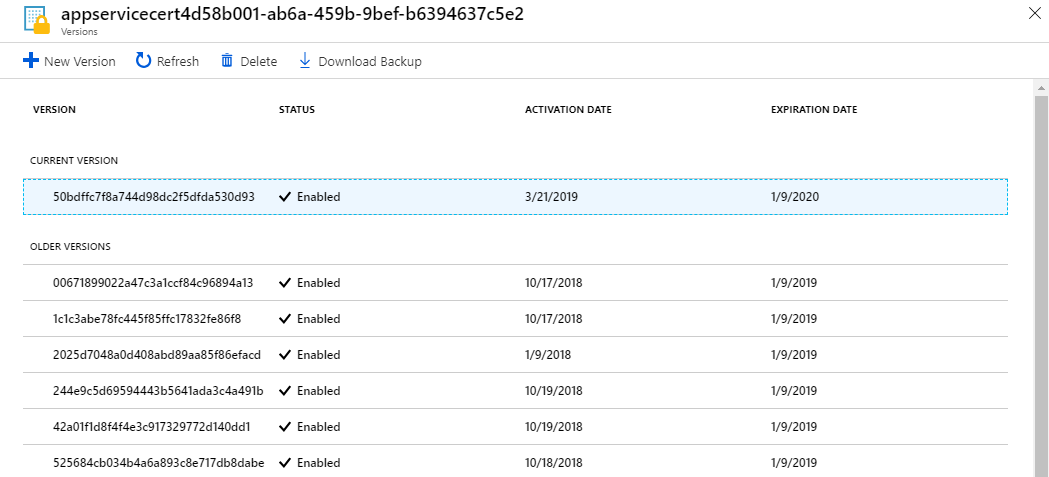 Meanwhile, in the App Service backend we have another task that runs every 48 hours to sync all certificates that have a KeyVault reference (you can import a certificate from KeyVault secret into a App Service Web App following this blog). The background tasks has to run through a lot of private certificates which have KeyVault references and check if they have changed and update the certificate if needed, during this sync we also need to update the SSL Bindings on all the apps that are using this private certificate to maintain a working configuration.